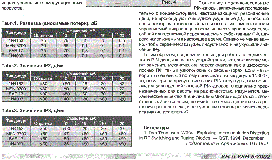 А от КД409 - це мастхев для комутації. Досить правильний діод. Ще з імпортного є спеціальні т.з. band-switching діоди, тобто комутаційні. Наприклад BA591. Для нього в даташиті нормується опір при заданому струмі та вони мають малу ємність.