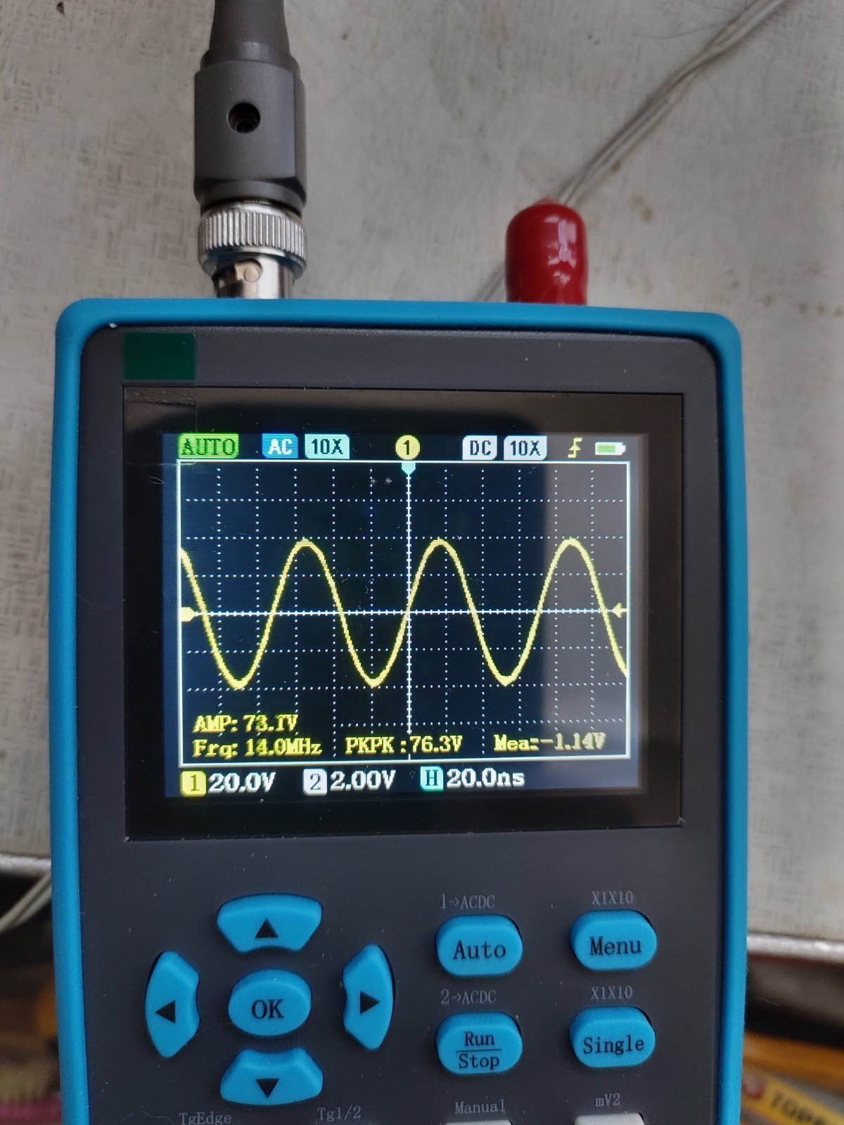 Зробив на макеті фільтр гармонік для 14 МГц. Ось, що вийшло. Така величина від 100 мВ р-р вхідного. Струм 3,3 А.