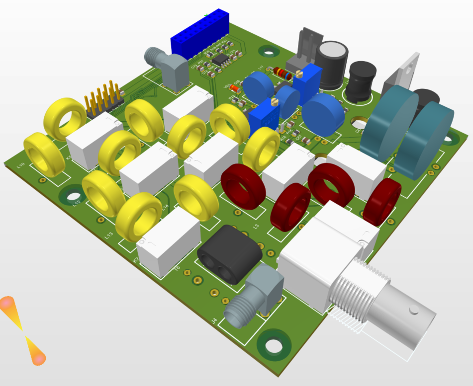 Після роздумів вирішив значно спростити схему підсилювача потужності щоб розмістити все на платі 100х100 мм. Схему можна глянути в репозиторії на GitHub. Додаю декілька картинок 3D моделей