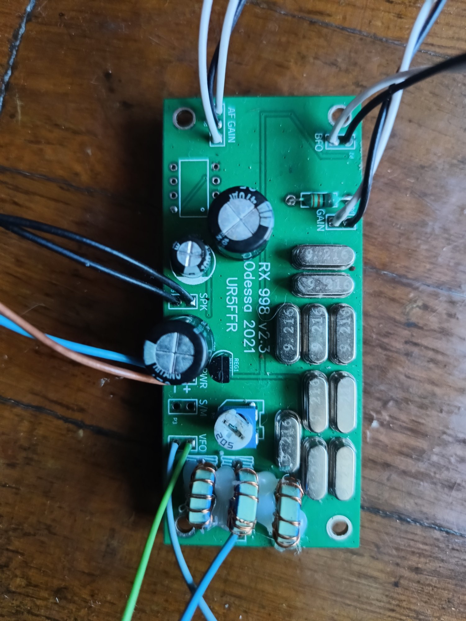Як я написав вище завузив кф до 2 кГц ( просто на ємності зверху ще накинув 30пФ вийшло 60 гадаю як би 20 пФ було б в самий раз але інших під рукою не було) почав експерементувати з ПЧ вийшло що коли поставив +300 по верхньому скату відразу почув Кропивницький (UR5VFI) коли ставлю -300 по ніжньому скату відразу тиша. Будемо ще боротися бо дуже велике бажання зробити щоб працював на телескопичну антенку, головне початок є