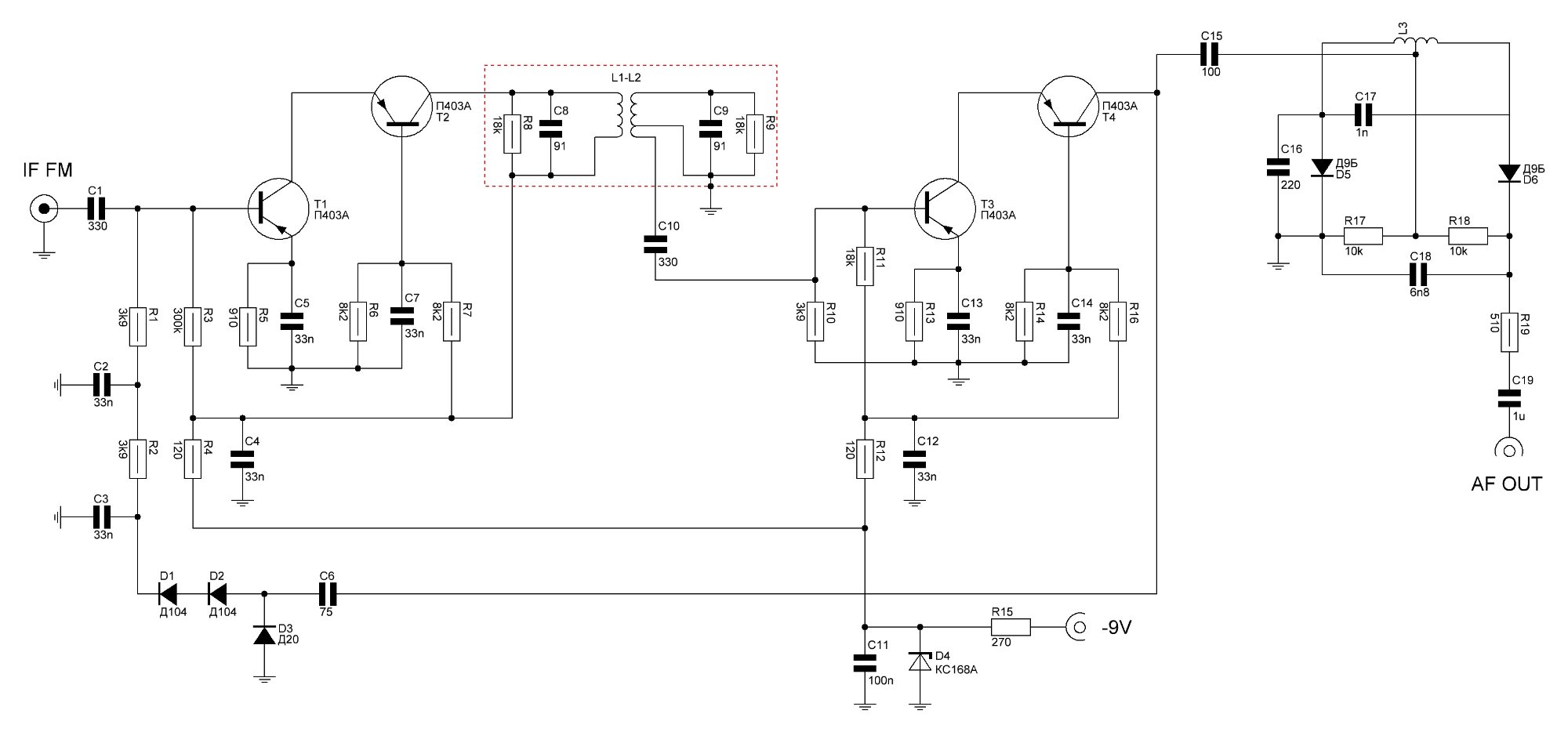 P.S. по підрахункам L1-L2 по 12 витків на кілечку 2000НН К10х7 і паралельно по конденсатору в 1н і підстроювальний 5-25пф