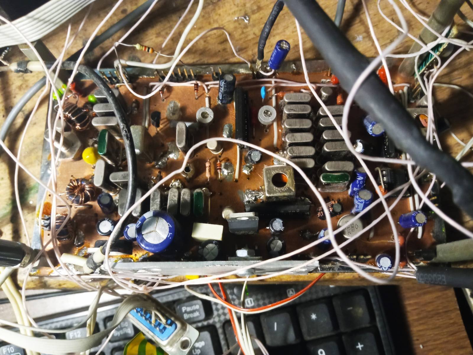 Вітаю, товариство. Проаналізувавши усі схеми електричні та їх друковані плати від oldPsyho та ,UR5FFR, зрозумів, що мій "варіант" мабуть десь посередині... Тобто, немає повної відповідності мого варіанту плати жодній з наведених схем і плат. Скоріш за все, це один з проміжних варіантів, що були надруковані автором. Це не катастрофічно, але впливає на швидкість робіт. Моя плата на фото. Характерно - коливальні контури справа і в центрі плати.