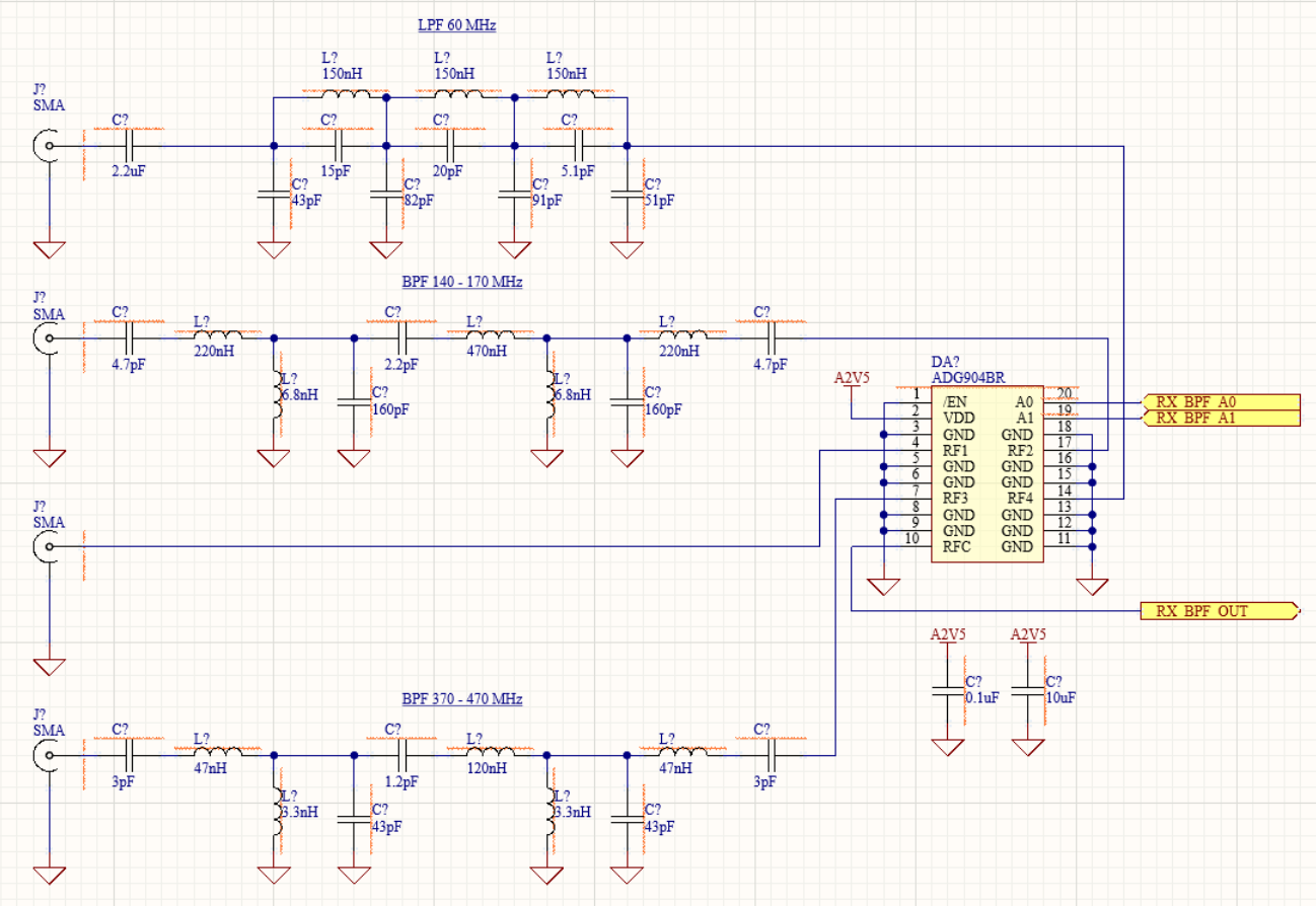 Питання, що до аналогової частини ще поки відкрите: поки не визначився з елементною базою, але хотілося б додати 2м та 70см діапазони, а може ще й 1.2ГГц (але невпевнений чи потрібно).