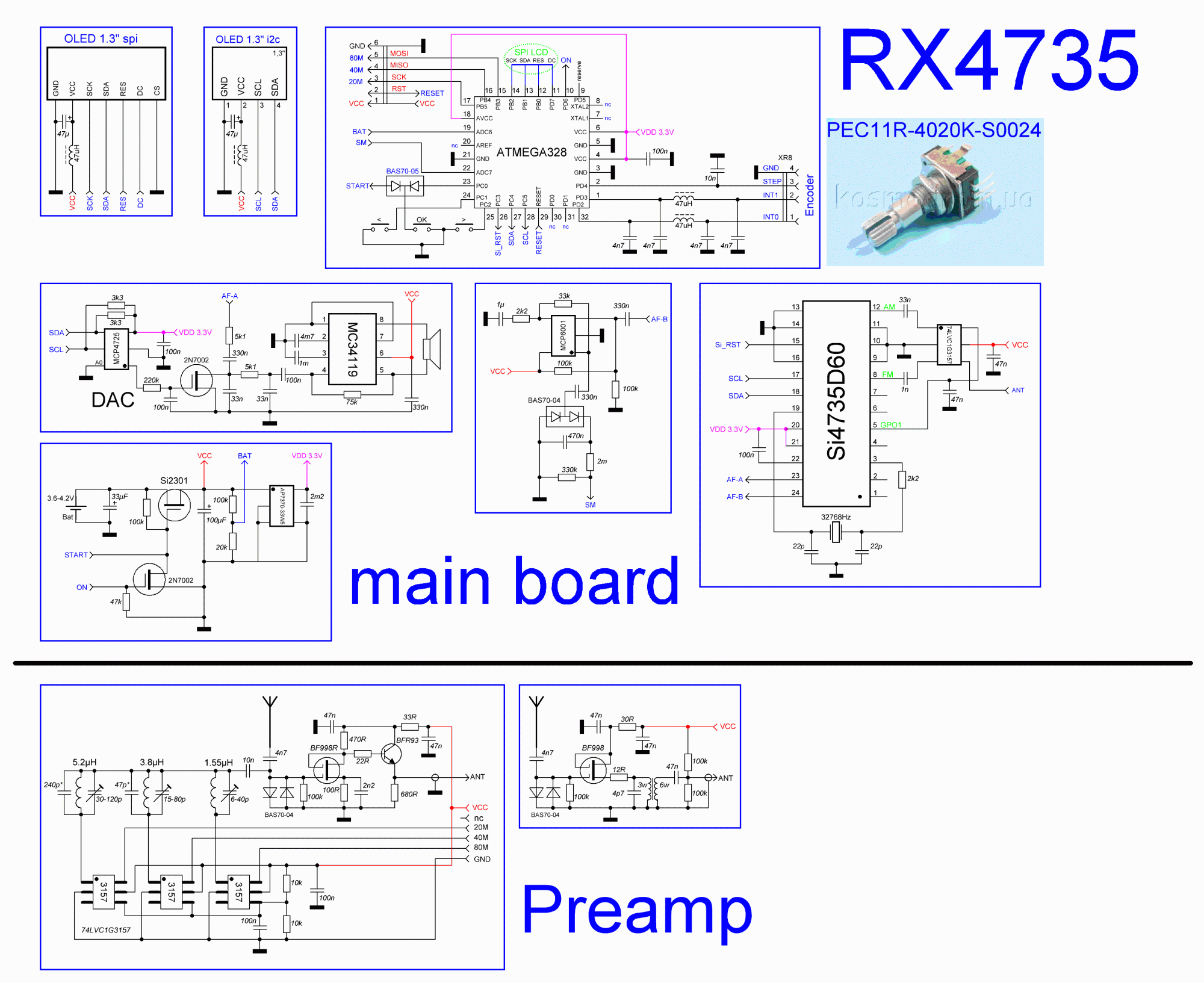 Ще з зими слухаю супергетеродин з живленням від одного літію. Розмір плати приймача 60х25мм. Преапм такий. Виконано на окремій платі. Жодних проблем з роботою немає. Та чому йому не працювати?