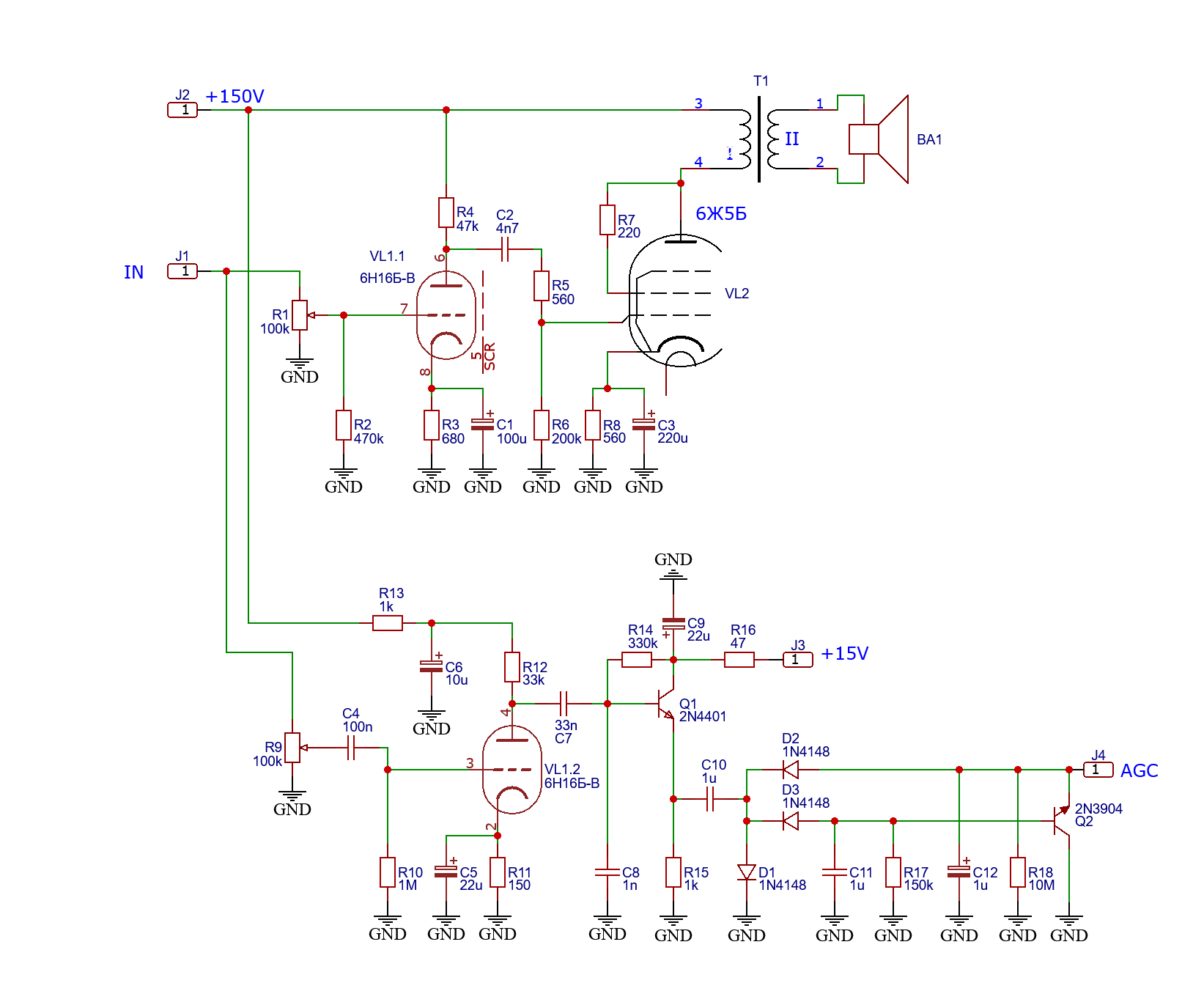 Зважаючи на те, що корпус в мене геть невеликого розміру, вирішив переробити схему на надмініатюрні лампи. Ось схема ПНЧ та АРП.