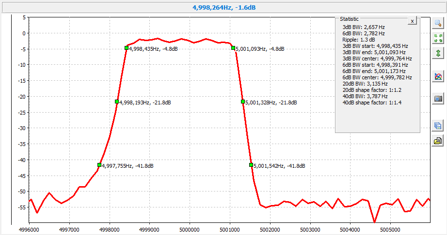 Отже, паралельно додав по 2,4 пФ, отримав полосу 2,78 кГц по рівню -6дБ:Наступні - по 3,3 пФ, отримав полосу в 2,7кГц по рівню -6дБ:Залишу так, і вважатиму цю плату доробленою: