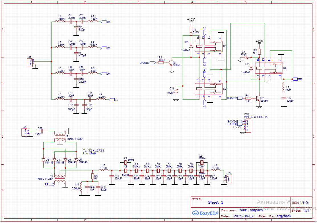 Ось на фото графік із ємностями у фільтрі по 33пФScreenshot 2025-06-16 174425.pngТут додав паралельно до ємностей у фільтрі по 3,3пФ ємності з намірами трішки земеншити смугу пропускання, але щось пішло не так. Буду розбиратисьScreenshot 2025-06-20 222609.png