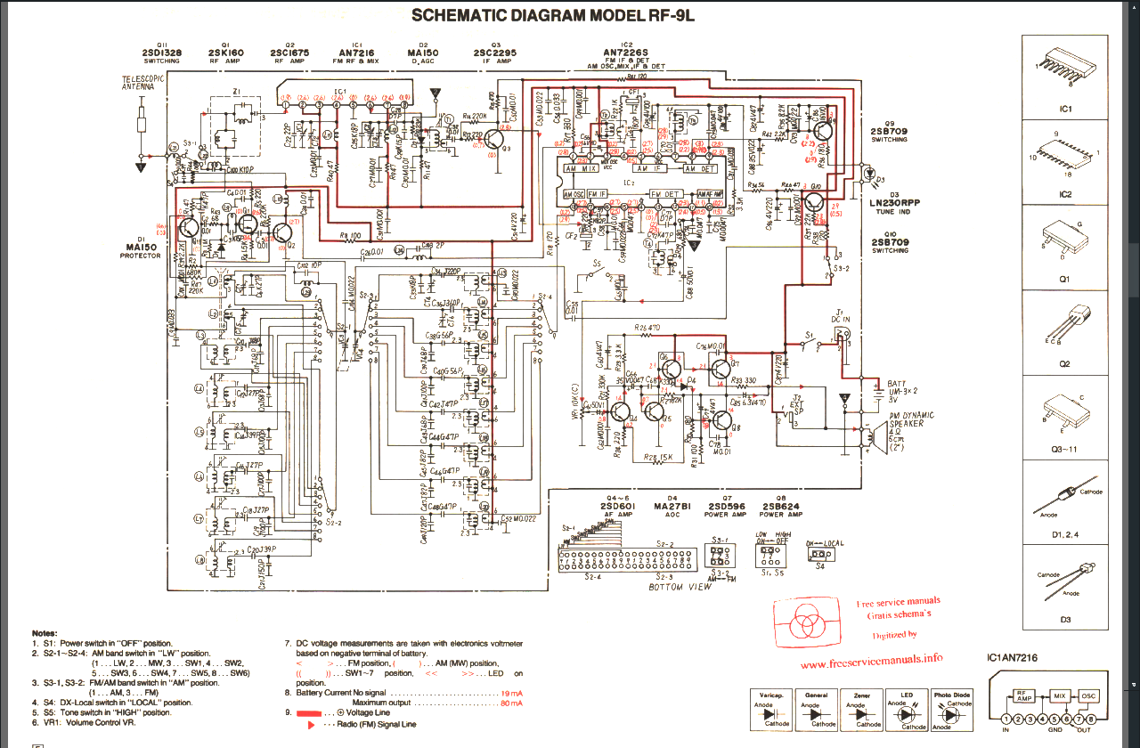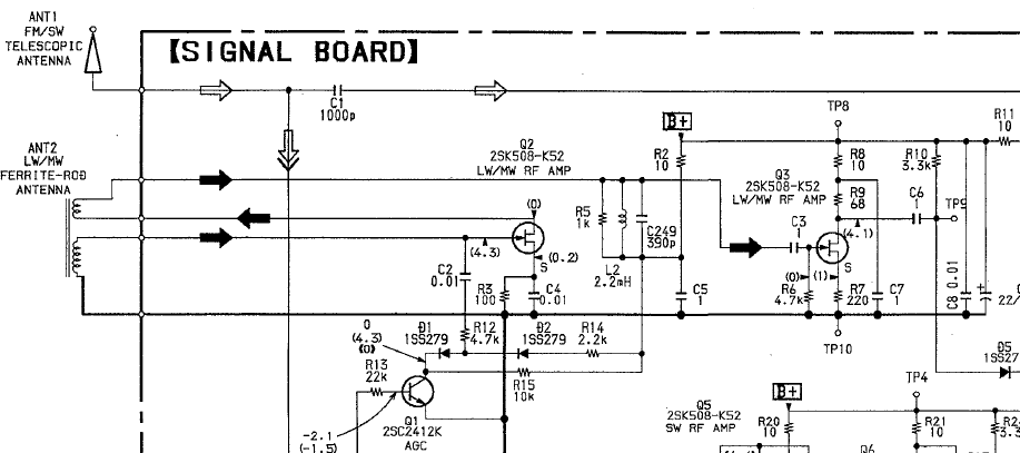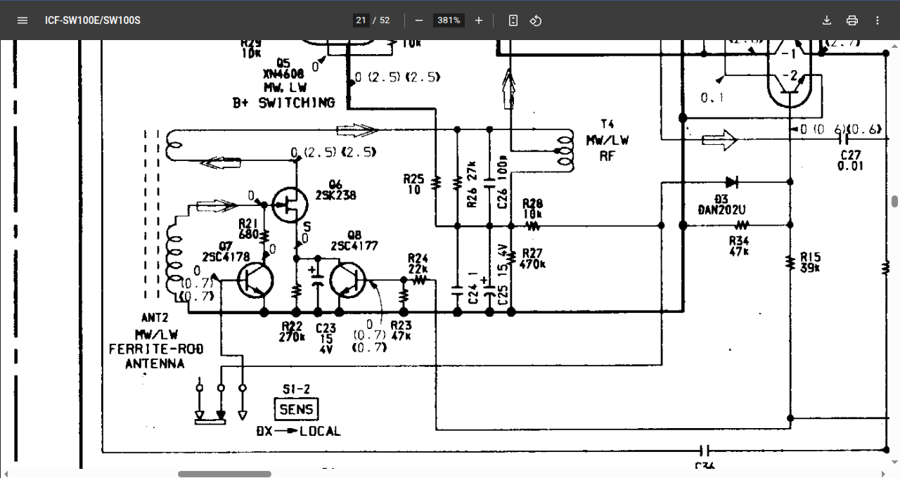 У багатьох приймачах SONY використовує широкосмугову магнітну антену для прийому на СВ/ДВ. Ось типові схемі з ICF SW07 та ICF SW55
