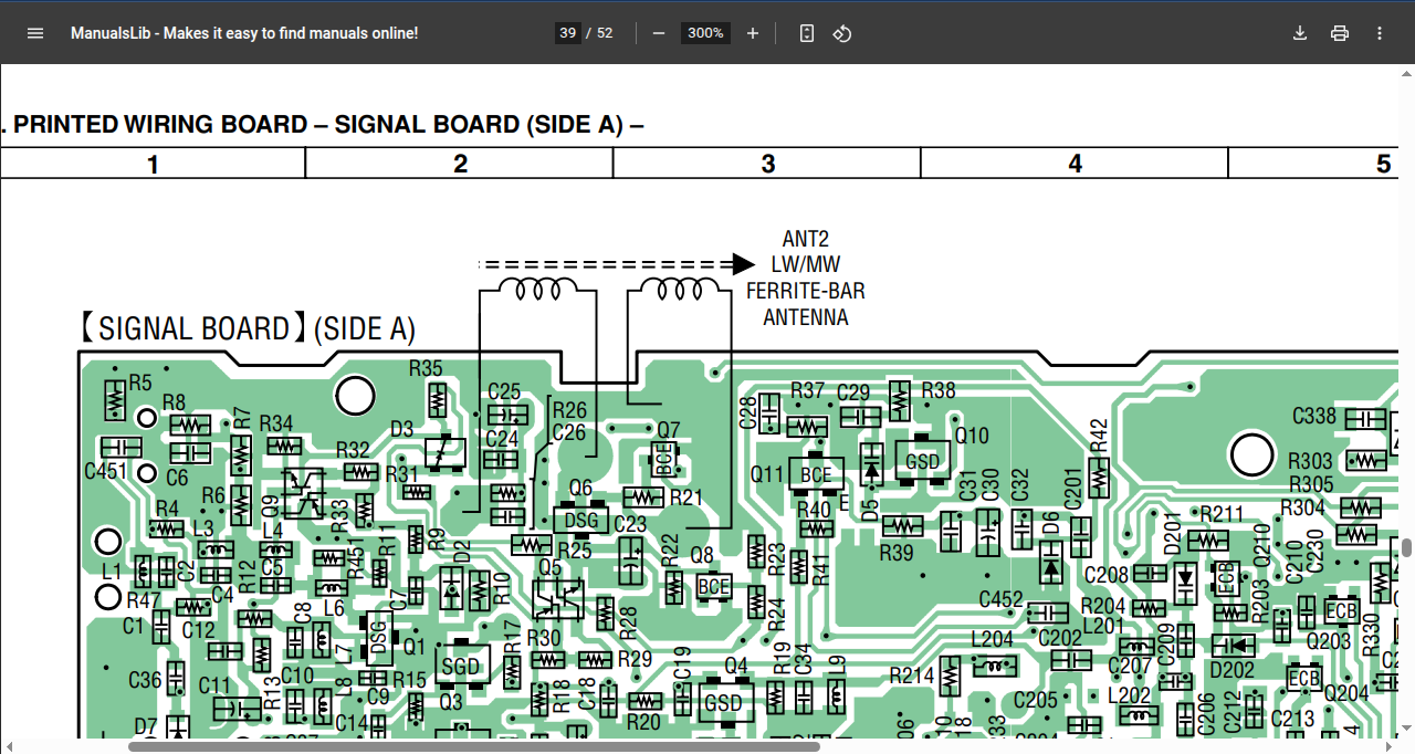 Основна котушка включена у затвор ПТ, а ось в його стік підключено віток зв'язку, який працює як негативний зворотній зв'язок. ПТ навантажено на контур 2,2mH+390pF з частотою резонансу 170кГц. По ідеї це все зроблено щоб отримати лінійну АЧХ. В сервіс-мануалі немає інформації яка кількість витків та індуктивність магнітної антени, але знайшов фото нутрощів - можна порахувати приблизно скільки.