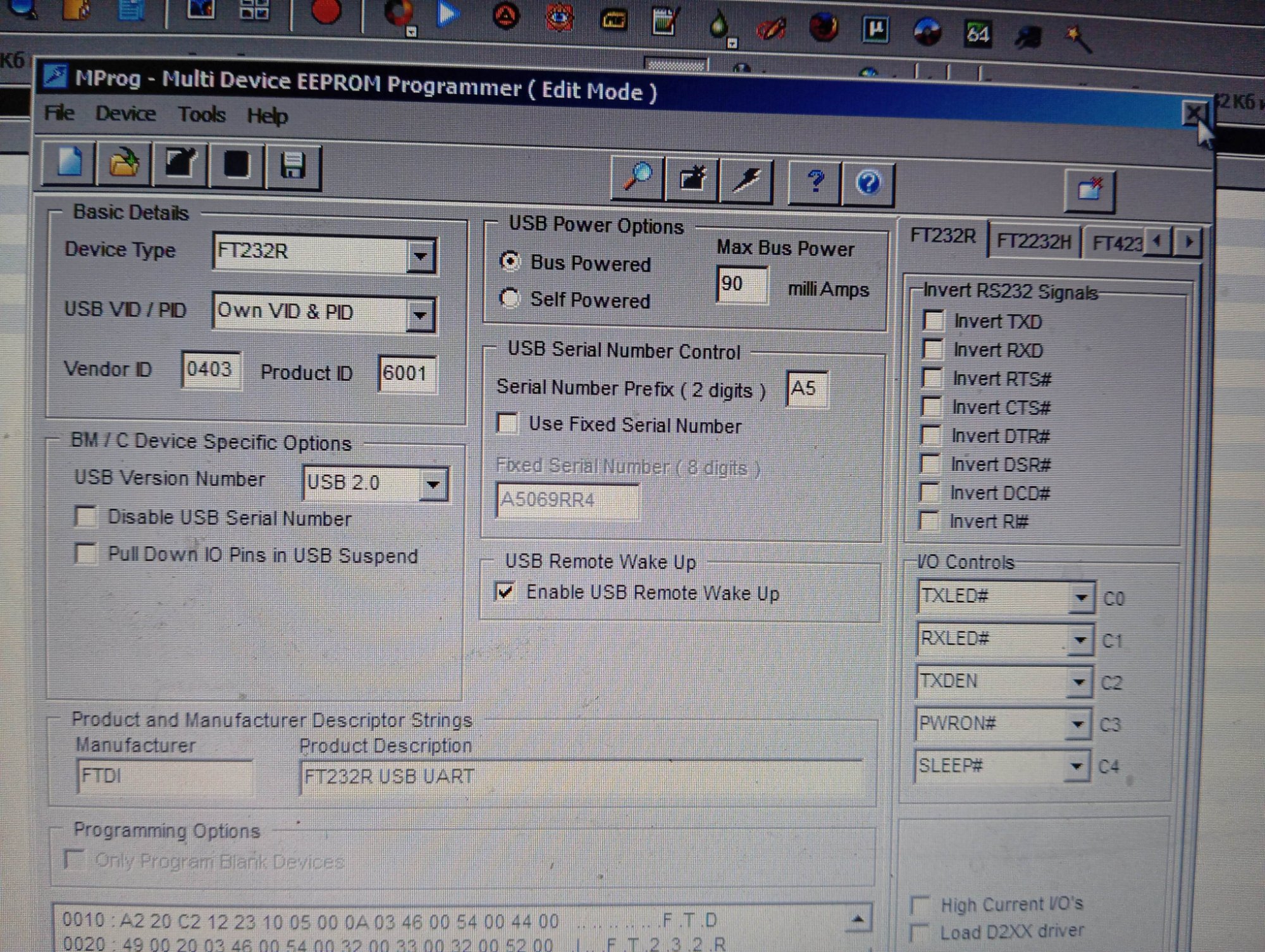 Отак виглядає неоригінальний ft232r. Єєпром не пише. Поміняти рівень виходів не вдається. Тому треба ставить інвертор.74hc04.