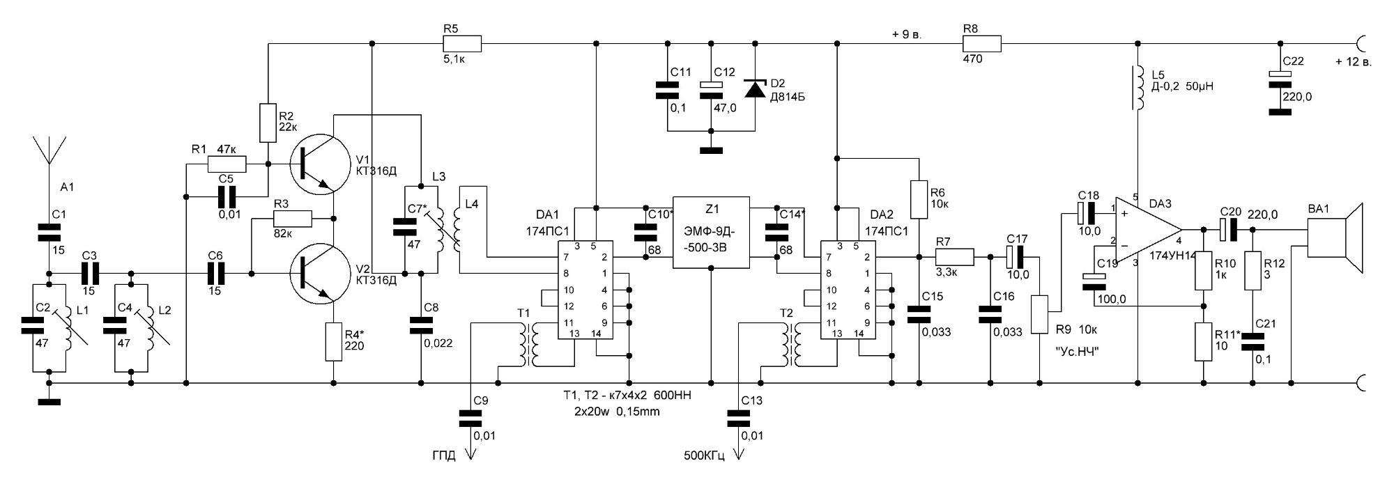точно не пч а нч ... 73!точно писав:Немає там ПЧ. На схемі ганебно-примітивний приймач прямого перетворення. Приклад того, як не треба робити.