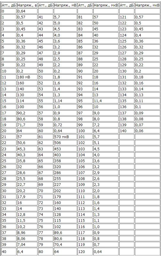 Регулювання буде перемиканням атенюатора, дані беру з цієї ось таблички (вона правильна?)