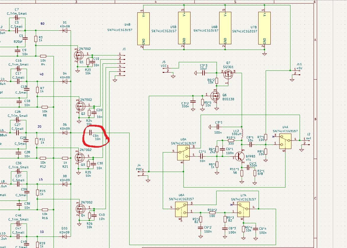 Паралельно конденсатрам 10n ? А преамп на bf998 i bft 93 від 5 в працювати буде чи треба тільки 12 ? Бо хотілося підключити прямо до синтеза без проміжкових ключів .