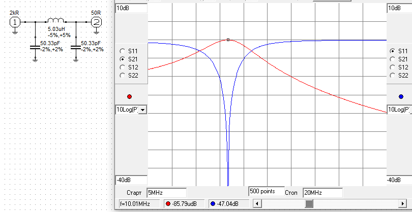 Ні, опори вхід/вихід не однакові - у тому то й фішка. Наприклад маємо Rs=2000, Rl=50, F=10MHz. Середньогеометричне дорівнює sqrt(2000*50)=316 ohm. Розраховуємо ємність та індуктивність для такого реактансу