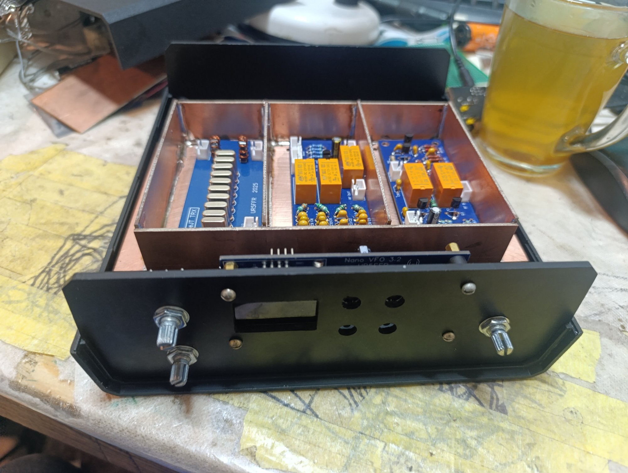 Я собі ось так бачу компонування в корпусі - основа із текстоліту по три плати з обох сторін, зверху ще кришечками із того ж текстоліту закриватиметься. І все це потім в корпус Z-1W. Ще є місця 50мм для ФНЧ і підсилювача.Weezerspoon писав: ↑Нед листопада 23, 2025 7:20 am Всім доброго ранку. Збірка свого першого трансивера продовжується. На прийом я його звичайно не перевіряв банально через брак часу,тут трішки вирвався вільний день то посидів з паяльником.На данному етапі мене дуже турбує корпус з компоновкою вузлів і вихідний підсилювач. От тут мабуть досвідченим жителям форуму для таких як я потрібно якийсь гайд написати конкретно по цій конструкції). Тут в темі бачив підсилювач(не пам'ятаю на якій сторінці)його для повторення мабуть і оберу. А от з корпусом і з матеріалом корпусу я схиляюсь до саморобного з текстоліту але це не точно.