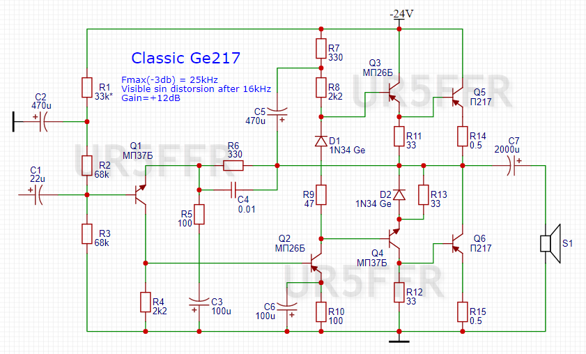 Далі замість кремнію на вихід встановив германій - П217 та ГТ703