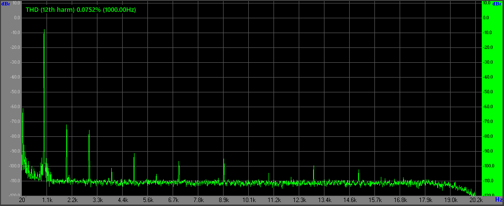 На жаль, мій вимірювальний стенд обмежує мене рівнем приблизно 0,005%-0,01% THD, тому реальні значення спотворень на рівнях менше 0,02% THD можуть бути насправді меншими.