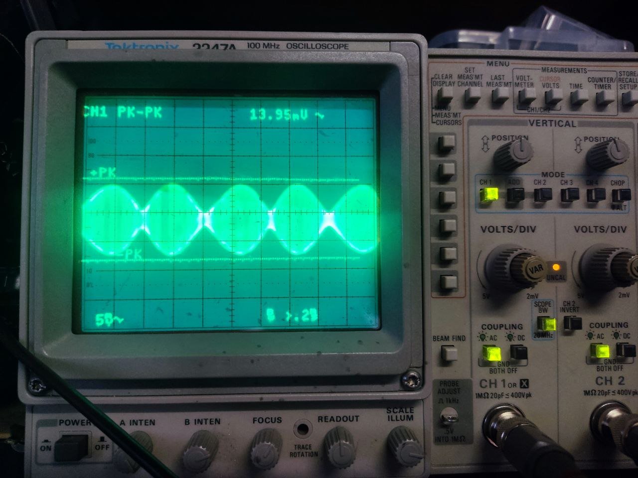 З поданою опорою в 500кгц та синусом 1кгц струм 4.5-5ма.