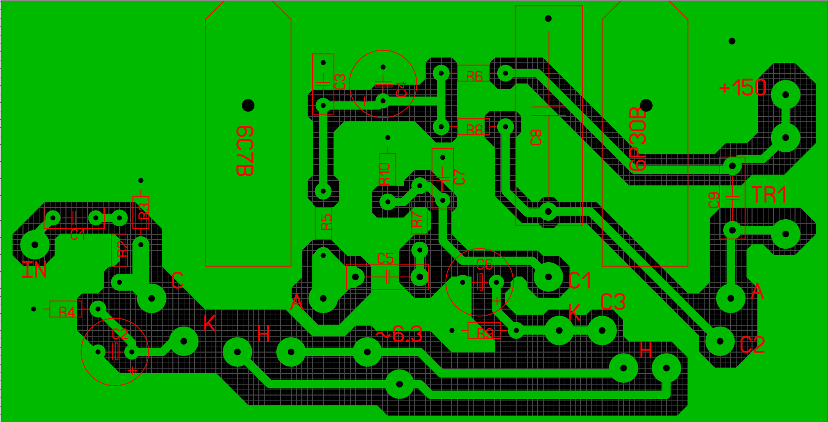 Доріжки 1.5мм шириною, по розрахункам там до 2.5А витримують. Заземлити один з виводів не важко. Але, на багатьох схемах (наприклад лампові магнітофони Дніпро) бачив що паралельно накалу ставлять змінний резистор на 100-470ом і движок садять на землю або на катод вихідної лампи, регулюючи який, прибирали фон.