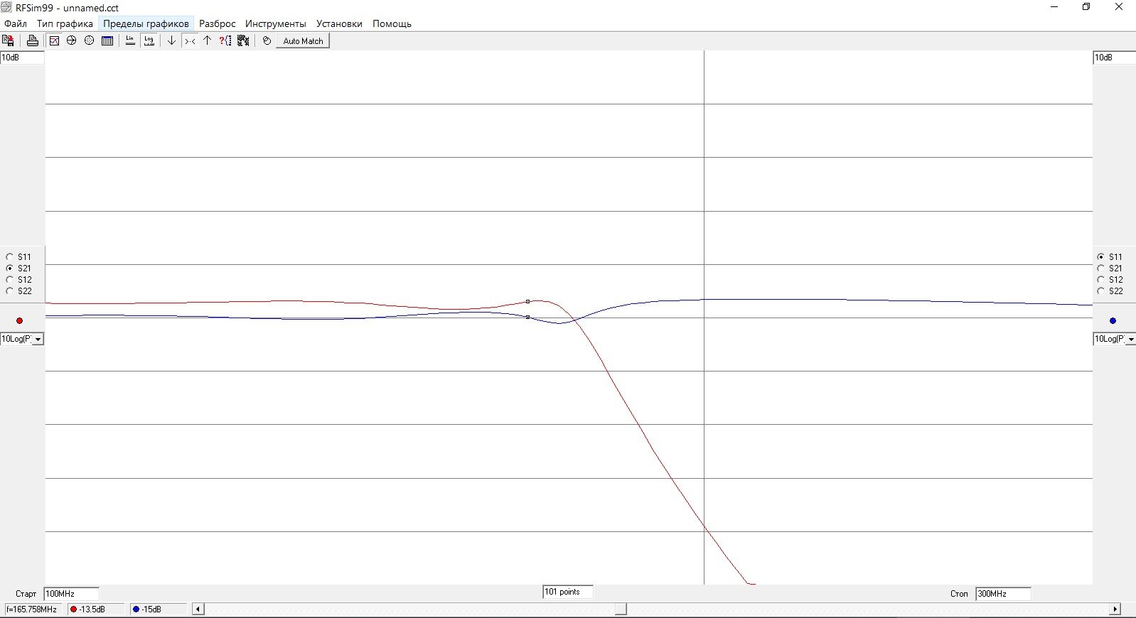 Перший - фільтр VFO з маленькою амплітудою для "сигнального" входа са612, схема та параметри:
