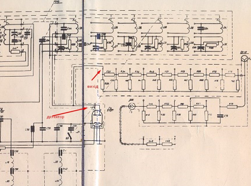 Щось ти таке викопав з часів динозаврів блін :) Беремо олдскульну классику - Г4-102. Ось тобі фрагмент вихідного підсилювача і шматок атенюатора - дивись куди діод детектора підключено. Усе так як я говорив