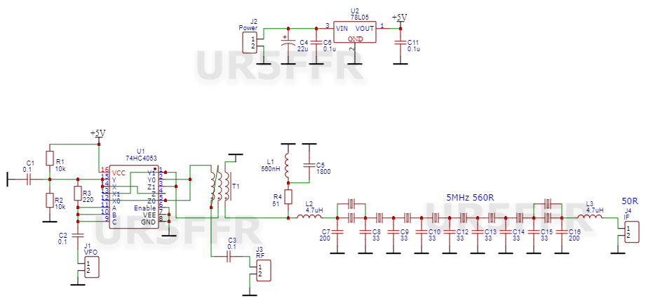 Також зробив змішувач на 74HC4053. Так, це не феншуй транзистори/діоди, але на один трансформатор менше. Та й мікросхема дешева і не дефіцитна. Схема
