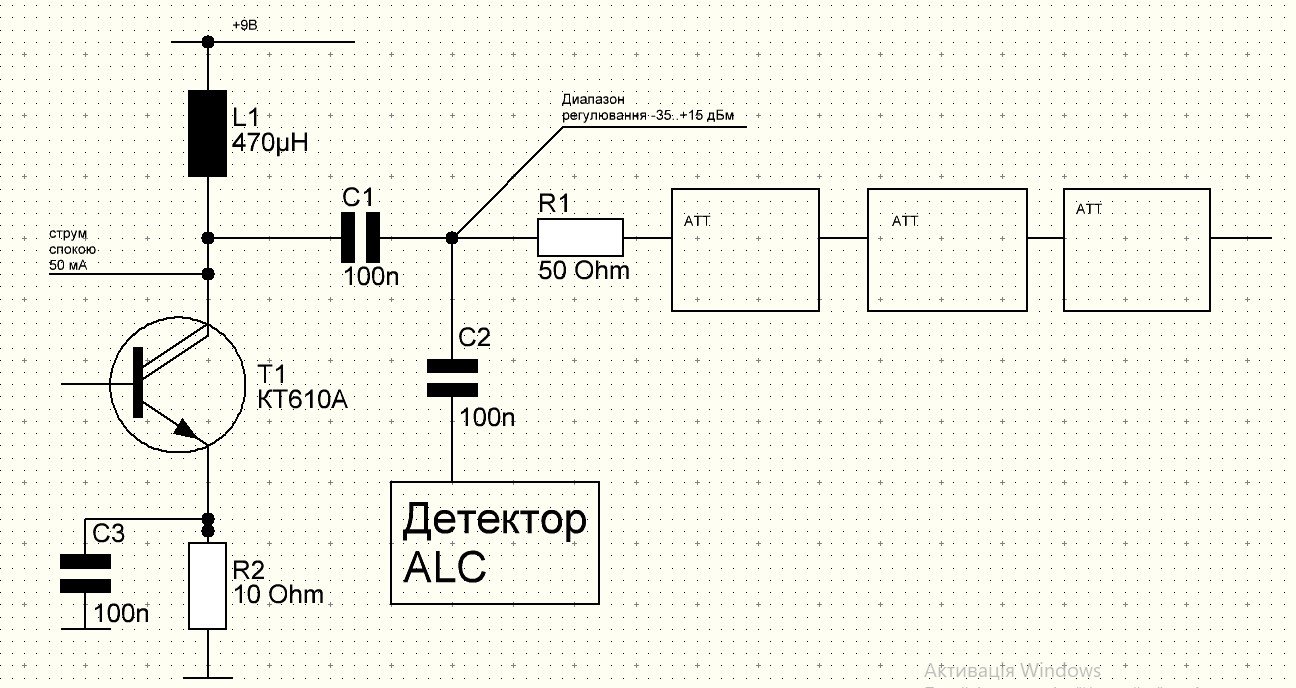 Коли ти вже книжки почнеш читати? Я ж тобі давав. Де резистор з бази на землю? Як ти стабілізацію робочої точки будеш робити якщо в тебе на емітерному резисторі 0,012*10=120мВ? Шоб нормальна була стабілізація то там треба 0,5, а краще десь 1в мати.
