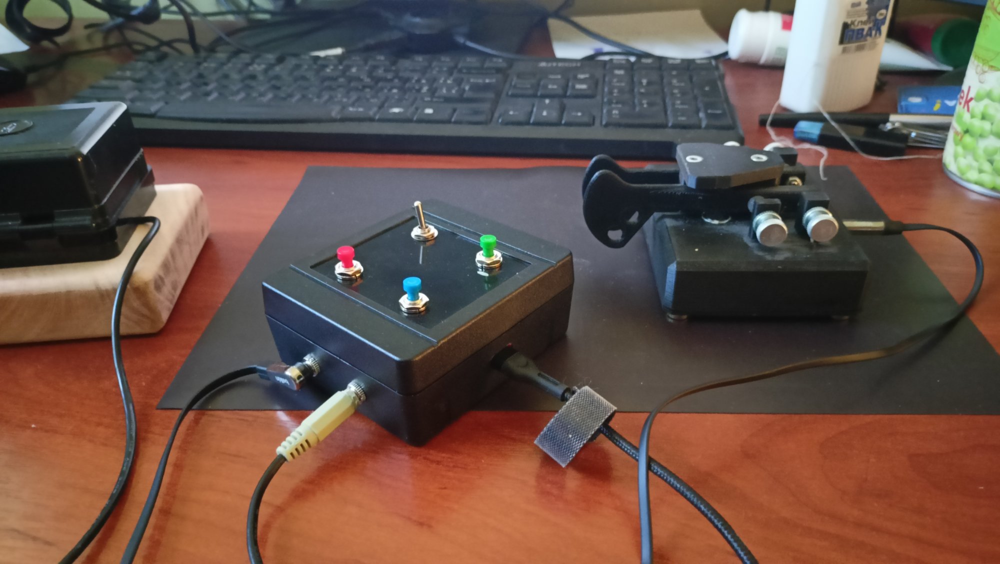 гадаю , щоце по темі . чому цей мій пост виглядає так дивно? бо написаний за допомогою телеграфного ключа. розробили разом з братом приблуду для тренувння роботі морзянкою. по суті клавіатура що підключається до комп ютера. тільки замість клавіш ключ або маніпул ятор.