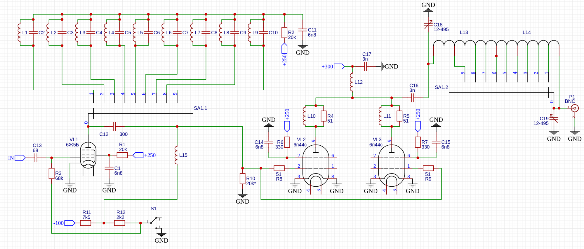 Ні, схема гівно повне. По перше - 250в анодного для 6Ж5Б це дуже забагато. Тому що в шиті пишуть що 150в - максимумДалі, сітка повинна мати негативний потенціал відносно катоду. Зазвичай у катод вмикають резистор і отримують на катоді декілька вольт а на сітці - нуль. А відносно катоду на сітці маємо негативне зміщення. Тут цього нема тому що при передачі сітка на землі і катод теж