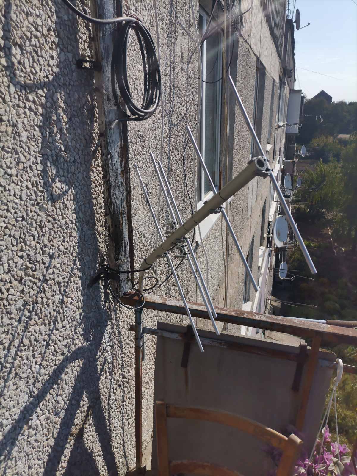 Антена встановлена на балконі, дивиться на південь і чууть на схід (градусів так 10), та має поляризацію близько 30 град відносно вертикалі. Кут над горизонтом близько 45 град, можна орієнтуватися по будь-яких геостаціонарних сателітах, в принципі воно то саме )) Однозначно потім буде потрібно підстроїти по прийому )