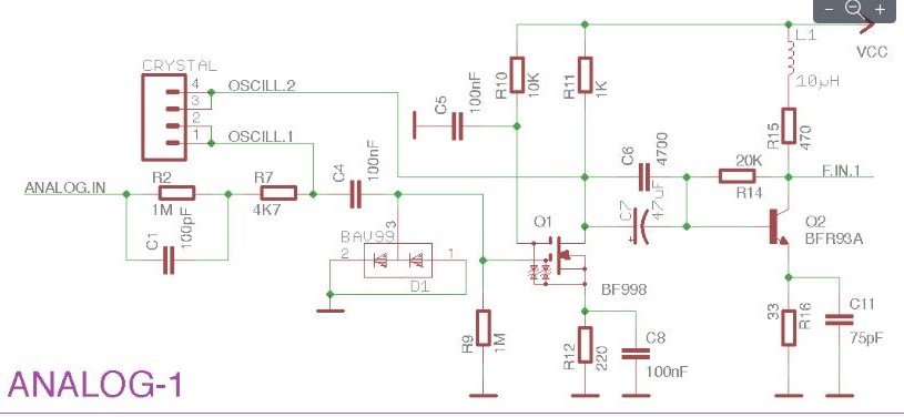 Зібрано всі каскади для ГСС, залишилося одне питання. Власне формувач-обмежувач для частотоміра. Хочу бачити амплітуду від 0,01 до 0,5В, так шоби не ставити дільники, а також шоб були дві "піпочки" для втикання резоантора, і побачити його частоту генерації.