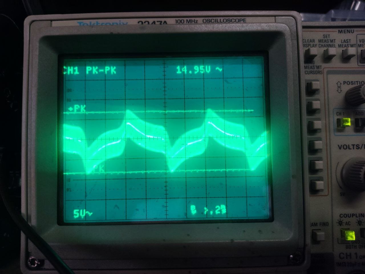 R11 довелось зменьшити аж до 20 ом. Подав синус 1кгц на вхід мікрофона, на BFO - 500KHz, кручу резюк RP3? на C17 отакі картини: