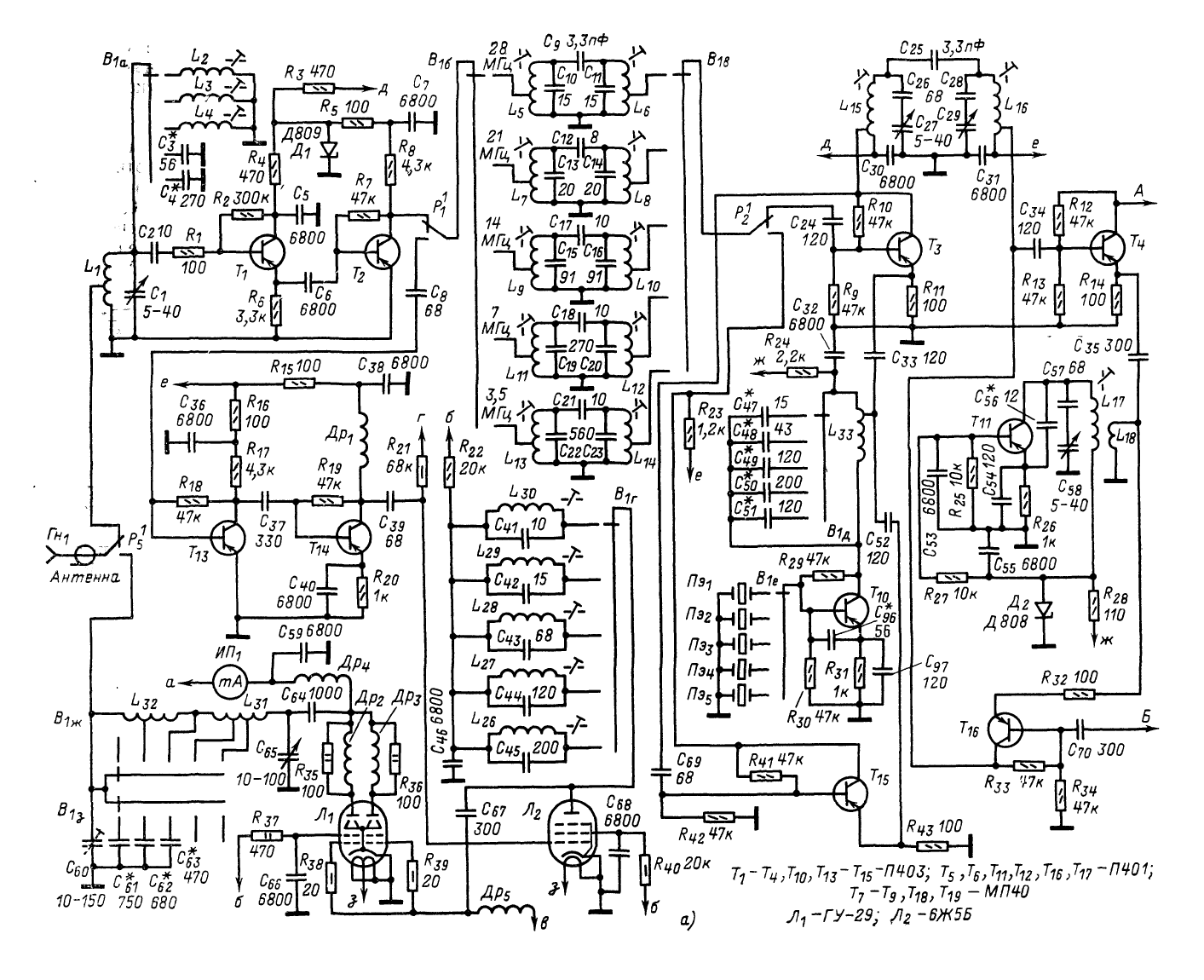 Ось наприклад ж-л радіо №10 1981 рік на 17й сторінціУ катоді драйвера 6Ж9П стоїть 100ом резистор. У катоді ГУ-19 стоїть стабілітрон - це дозволило відмовитися від негативної напруги