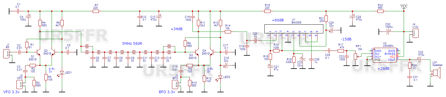 Також виміряв більш точніше підсилення по каскадам. Перший змішувач +11dB, КФ -3dB, другий змішувач +26dB