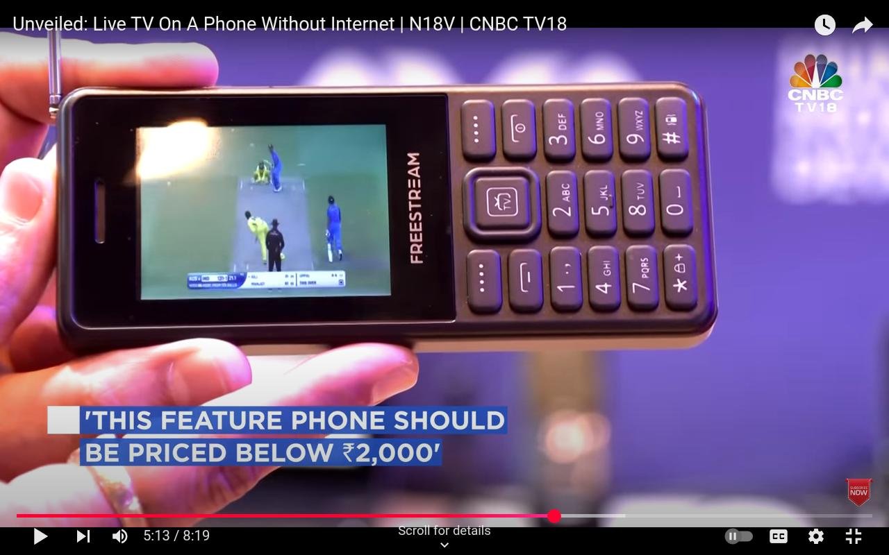 Нові "дешеві" індійські кнопкові мобілки з телескопічною антеною для прийому телевізійного сигнала на основі SDR для масового ринку Індії по ціні до 2000 рупій (24 долара / 1000 гривень) а також модель смартфона без антенки з сенсорним дисплеєм для прийому супутникового 5G-мовлення.