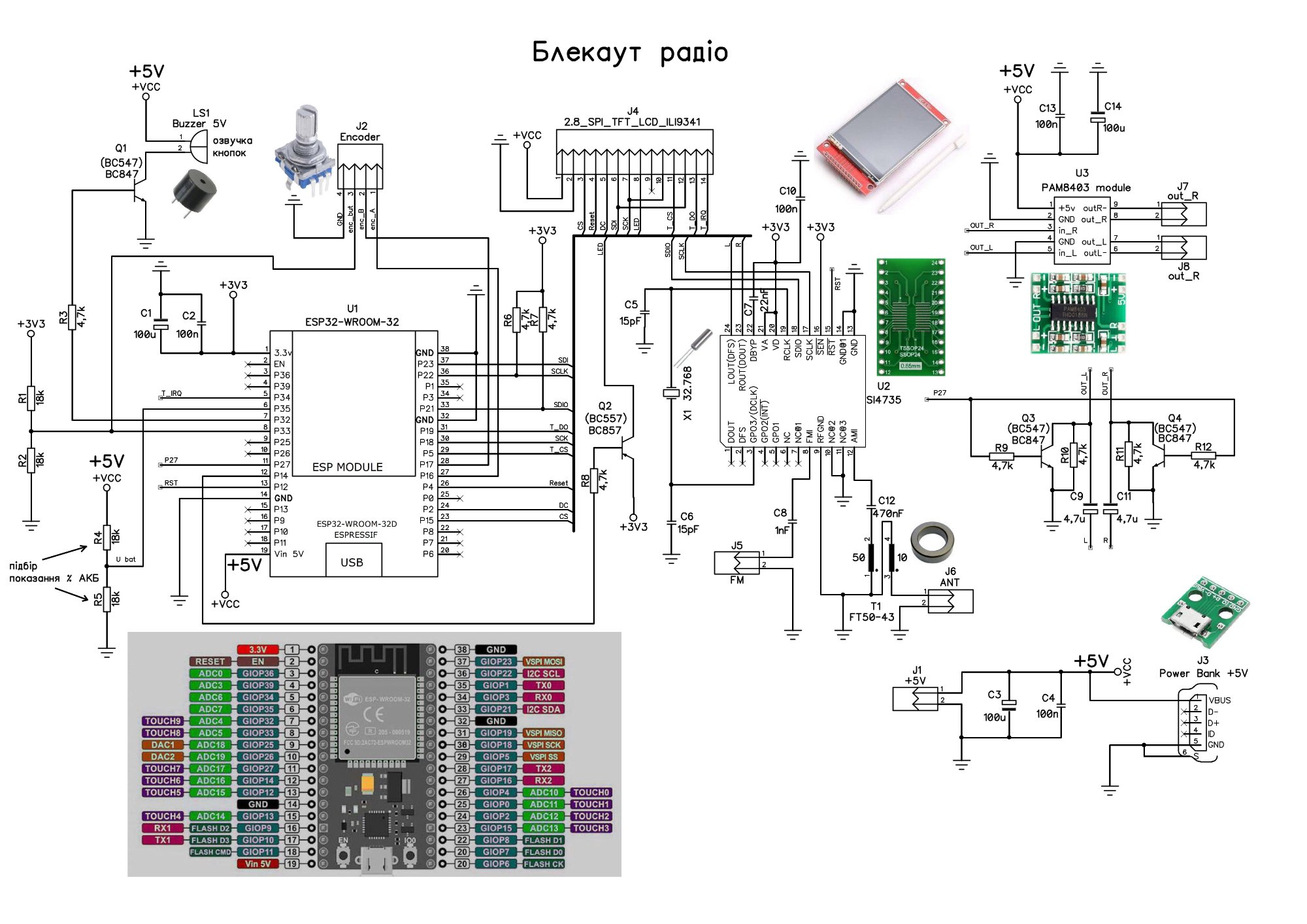 Програмне забезпечення, бібліотеки, скетчі, схеми живуть тут. А для TFT LCD дисплей 4” все тут.  Все на Ардуіно написано. Треба встановити потрібні, скомпілювати і «залити» прошивку в модуль ESP32.  Треба трохи розібратися, бо деякі бібліотеки не сумісні і при компіляції деяких різних проектів, видає помилку. Якщо будуть проблеми з прошиванням, то з годом викладу десь свій портабле - ардуіно софт зі всіма потрібними лібами для «заливання» без помилки.