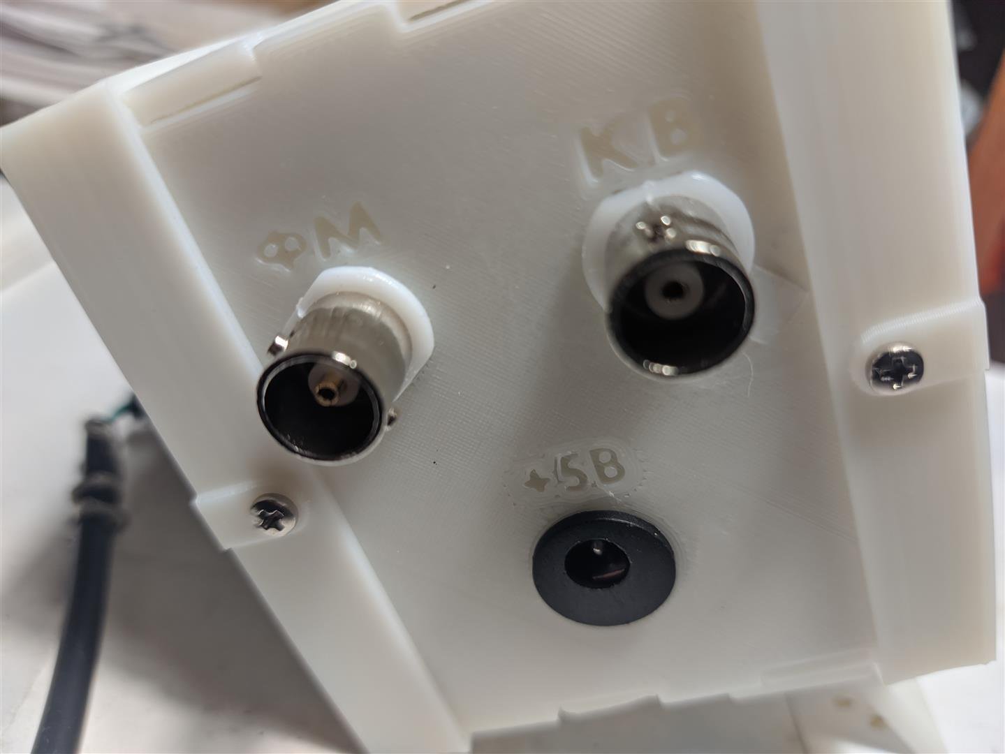 Антенні роз’єми BNC-типу, «мамки», такого вигляду. 2 шт. для ФМ и КХ.