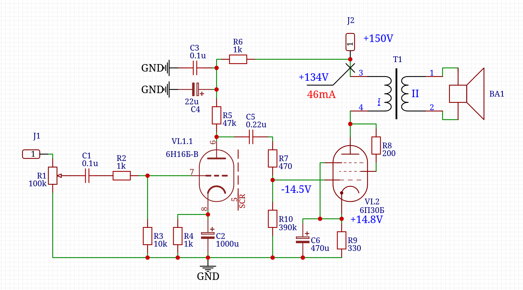 P.S. я так розумію, 46ма це лампа повністью відкрита?  Хоча, судячи по анодно-сіточним характеристикам, такий струм і повинен бути...