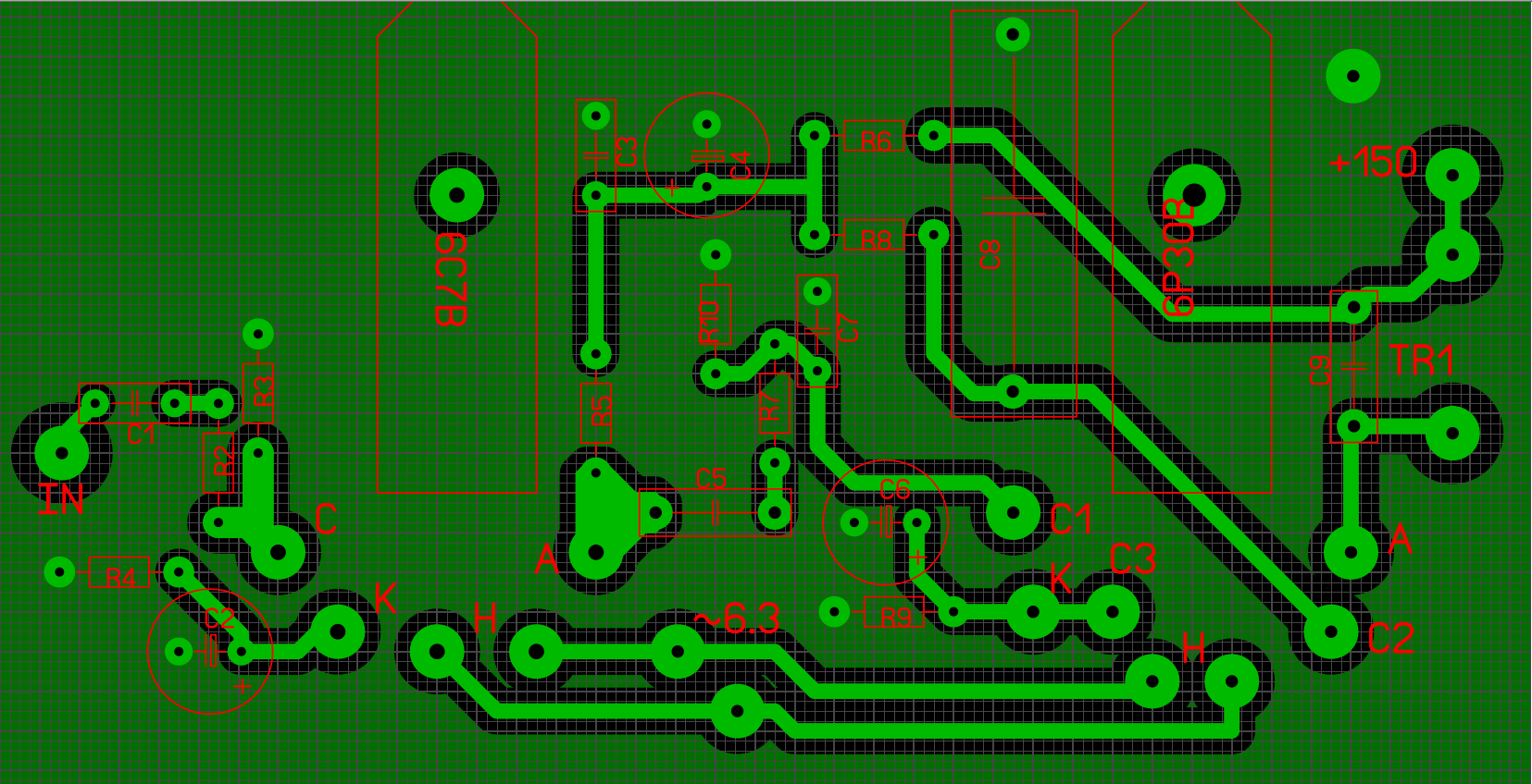 Доріжки 1.5мм шириною, по розрахункам там до 2.5А витримують. Заземлити один з виводів не важко. Але, на багатьох схемах (наприклад лампові магнітофони Дніпро) бачив що паралельно накалу ставлять змінний резистор на 100-470ом і движок садять на землю або на катод вихідної лампи, регулюючи який, прибирали фон.