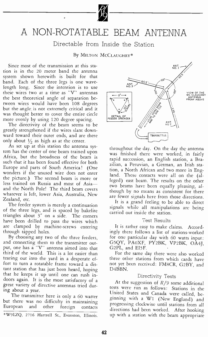 В R/9 за грудень 1935 року викладена стаття M. McClaughry W9LZQ “A non-rotatable beam antenna”.
