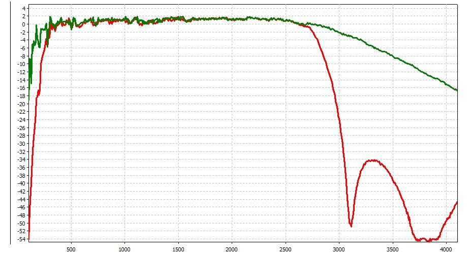 Широкий фільтр 2800Гц. Красний трек - гіратори, зелений - Саллен-Кей 6го порядку