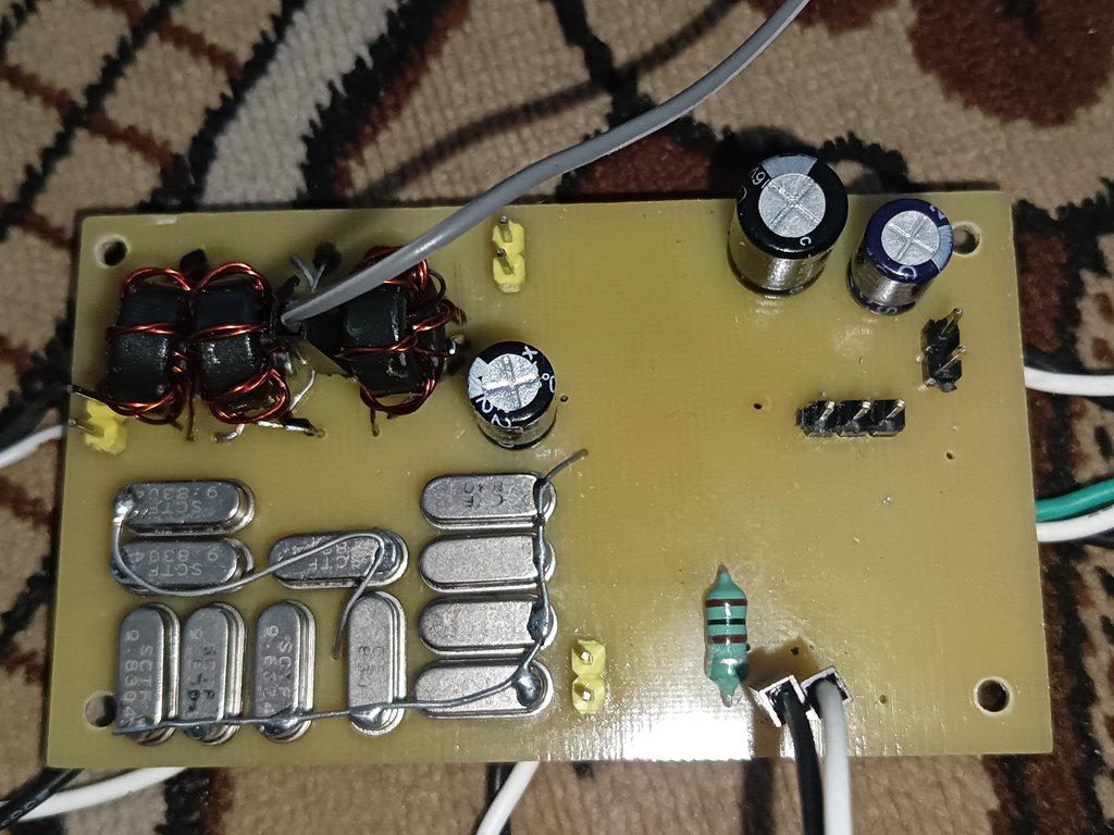 Та я вам вірю що їх нема. То в мене десь якась бабайка закралася і стукає при перестройці. BFO відключиш на сішці подасиш з окремого генератора і приймач працює відмінно. На вихідних куча контестменів було як ви вище і писали, навіть "NA5J" на 40ці ловився досить гучно на кусок провода. Але от тільки активуєш другий вихід на сішці починаються чудеса. На легкий бардак на платах не звертати увагу, це вже в процесі пошуку "бабайки" такий вигляд все набуло а до цього все було зразково. Можливо у мене такі мілкосхеми попалися(випаяні з ардуїновських модулів).Доречі ще дась на очі попадало що якщо їм виходи налаштувати на максимальний струм то вони можуть чудити.