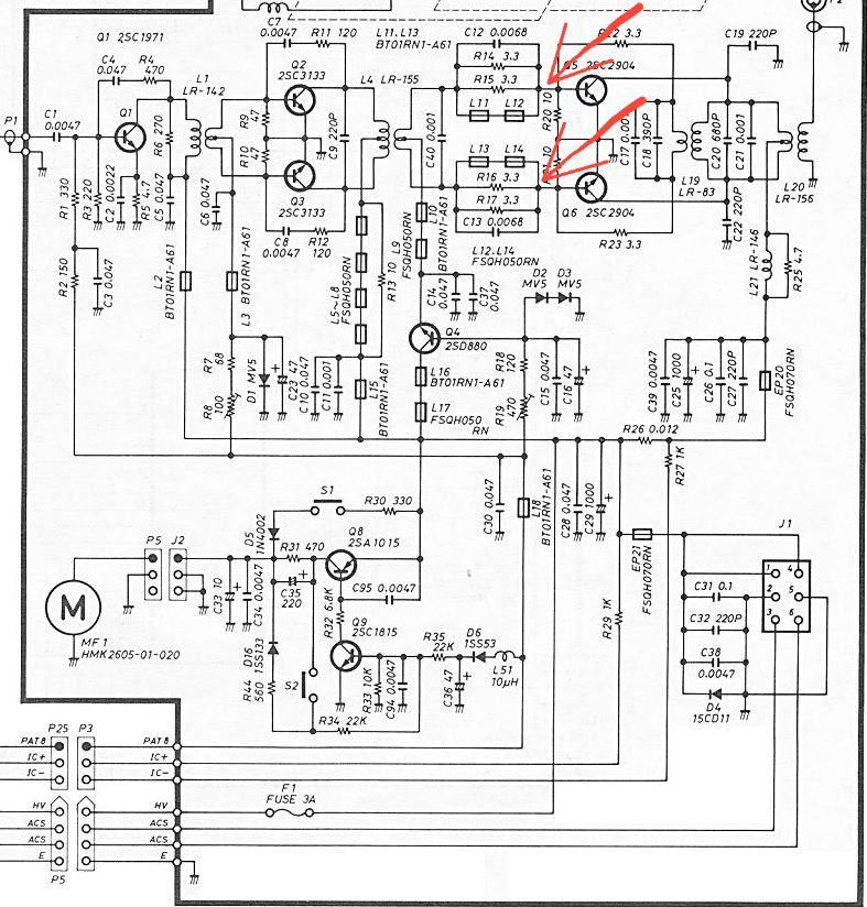 Причину знайшов, кільцеві тріщини біля виводів дроселів, при тому не озброєним оком їх не розгледіти. Струм є! Дякую Андрію і учасникам форуму! Тему закрито! Електроніка - наука про контакти!UR5FFR писав: ↑Чет вересня 25, 2025 7:39 pmЯ вам написав що робити. Це токове дзеркало. Чим більший струм через діоди тим більший струм спокою.master_yogurt писав: ↑Чет вересня 25, 2025 7:30 pm R19 зараз стоїть новий на 1К, але, що дивно, що резистор цей працює тільки у діапазоні 75-100% оберту, точно так, як і рідний на 470 Ом. Тобто до 75% оберту толку від нього немає...