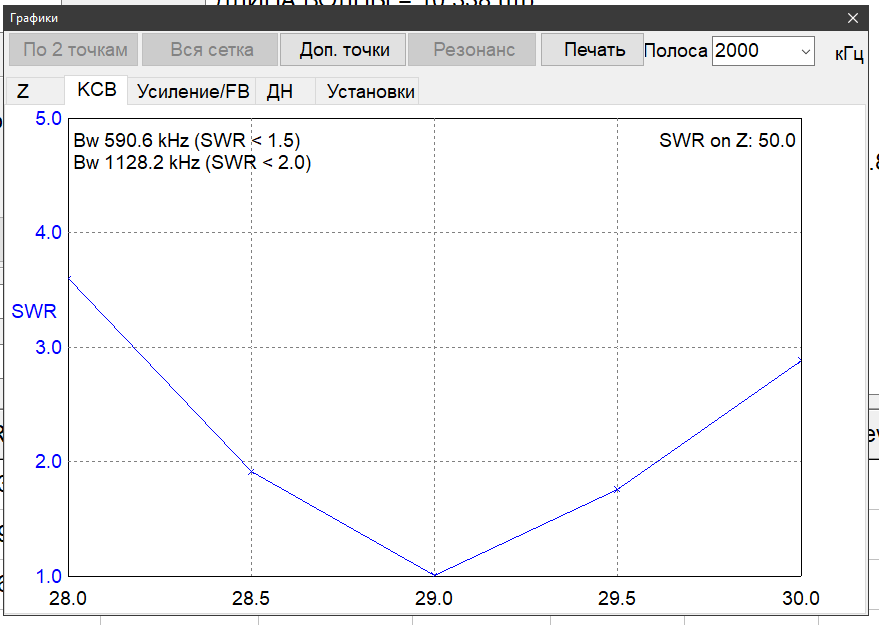 Замінив матеріал на мідь (трубка звісно вийшла з неї, але для дюралю підсилення впаде і смуга зменшиться невідчутно). Висота 3 м.