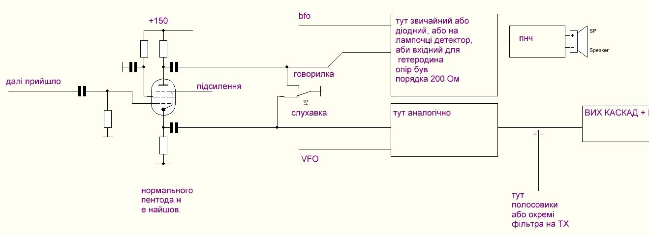 Я так думаю щло зразу після кф буде в тріодному каскаді цепочка ару на діодах... Або замість двух тріодів пентод. Але в мене тільки 1Жхх з малою крутизною... :ж тільки один. Або десь замовлю.... Побачим. Як краще буде взагалі?