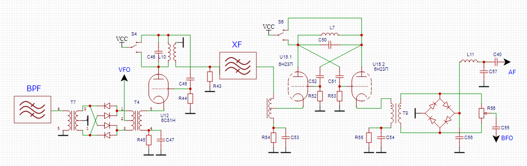 UR5FFR писав: П'ят червня 16, 2023 12:09 am І ще один варіант з реверсом по типу Raisin. Але тут треба по НЧ розганяти підсилення десь під 60дб. Звичайної зв'язки тріод+пентод буде замало бо вона дає десь 35-40дб максимум.tube_trx_ur5ffr_concept2.pngЯкщо комусь замало динаміки то ось схеми високорівневих змішувачів на діодах.