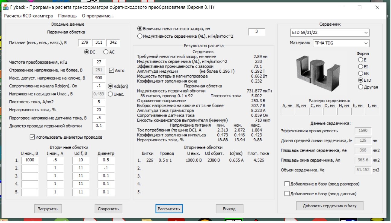 Як що магнітопровод ЕТД то там простіше, але питання до зазору, як впевнитись що він правильний ? я так зрозумів , що потрібно створювати нову тему по флайбаку ?