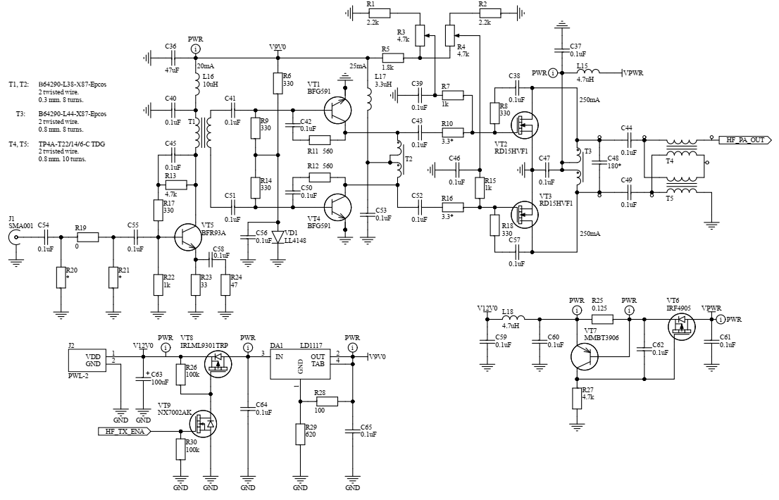 Нарешті дійшли руки щоб завершив роботу над частиною проекту ПЛІС, що реалізує DUC та завершити зборку вихідного підсилювача потужності. ПП зроблений по відомій схемі