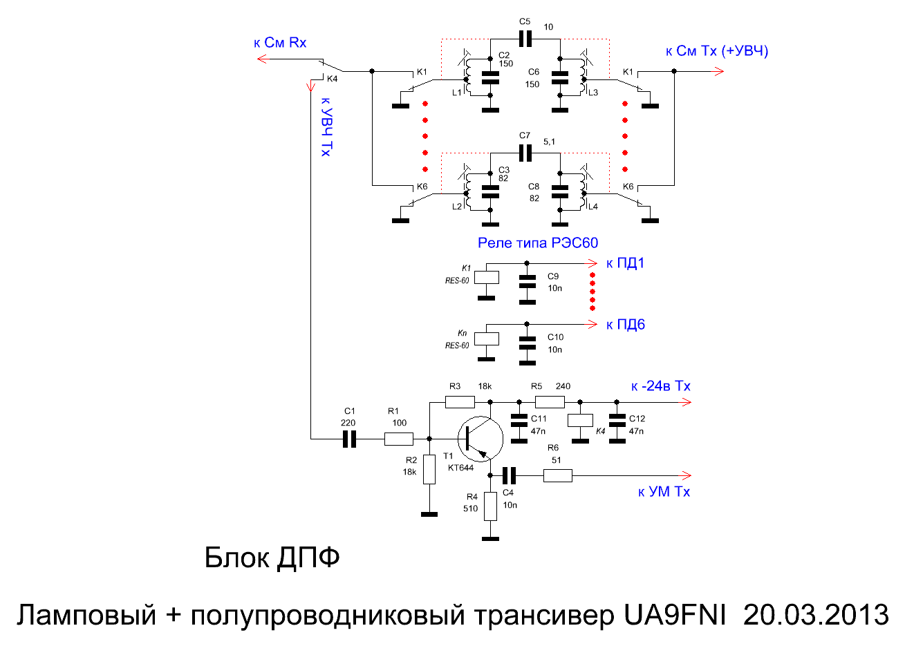 Построение тракта совпадает с трактом Радио-76, но, в отличие от него, неиспользуемые в режиме приема или передачи входы замыкаются на землю контактами реле что улучшает помехоустойчивость.