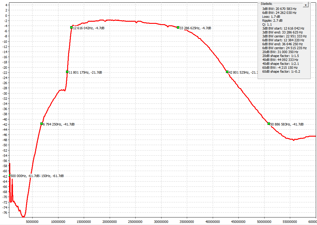 Фільтри зроблено з комбінації ФНЧ-ФВЧ. Основна мета - придушення дзеркального каналу який відстоїть на 21,4МГц вище за приймаєму частоту. Також на платі є атенюатор та ПВЧ.